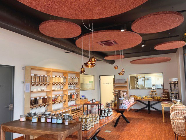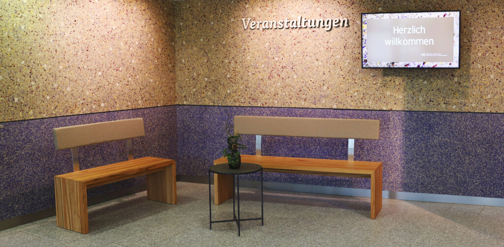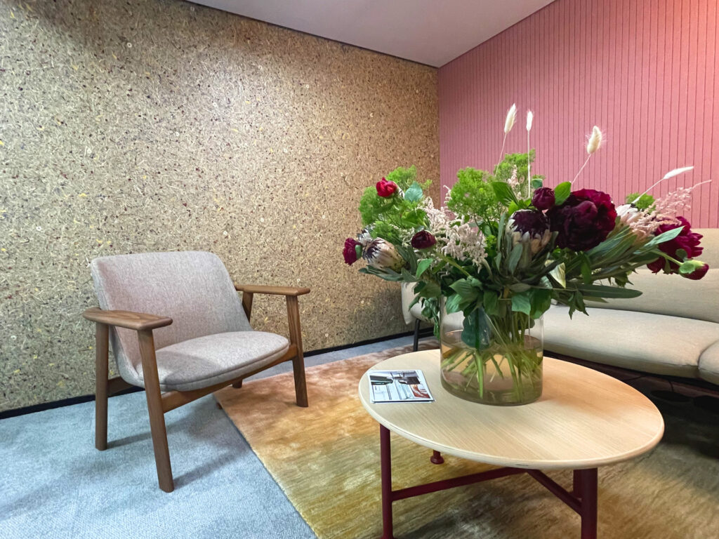 Produkte: ALMWIESE, RELAX, BAMBOART MARGERITTA medium, KAFEELEDER, KORNBLUME BLAU | Projekte: TAUERN SPA Zell am See – Kaprun, CARMEL Business Showroom Israel