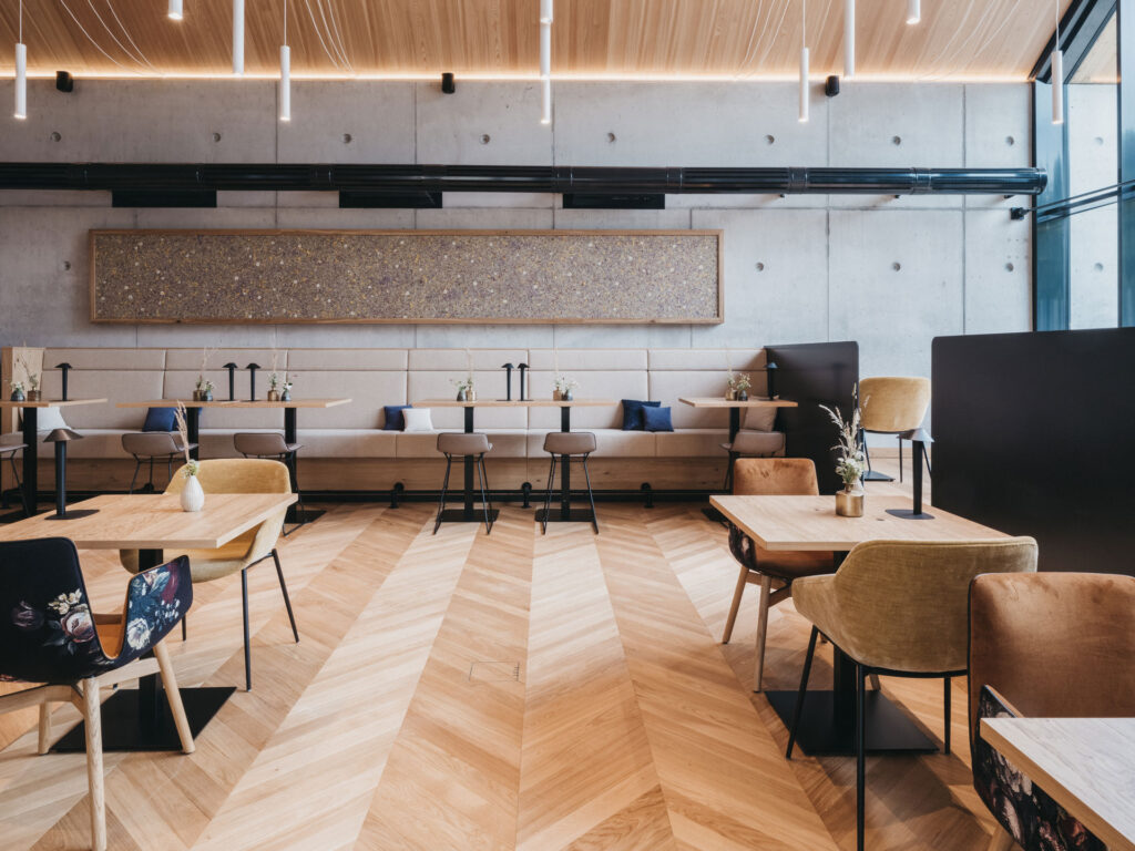 Produkte: KAFEELEDER, LAVENDEL medium, MOOS MIX, ALMWIESE, WILDSPITZE HIMMELBLAU, SKELETTBLÄTTER ANTHRAZIT light | Projekte: Hotel Hochzillertal, Cybernet Headquarters in Tokio, Honest Coffee Brüssel, Cafe FLUZZ Kufstein