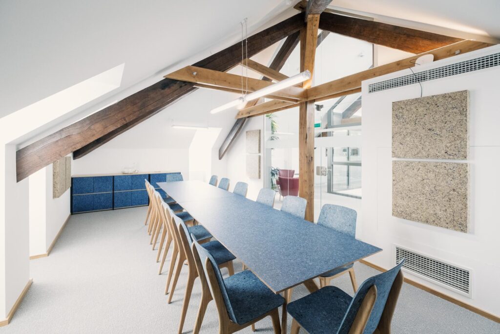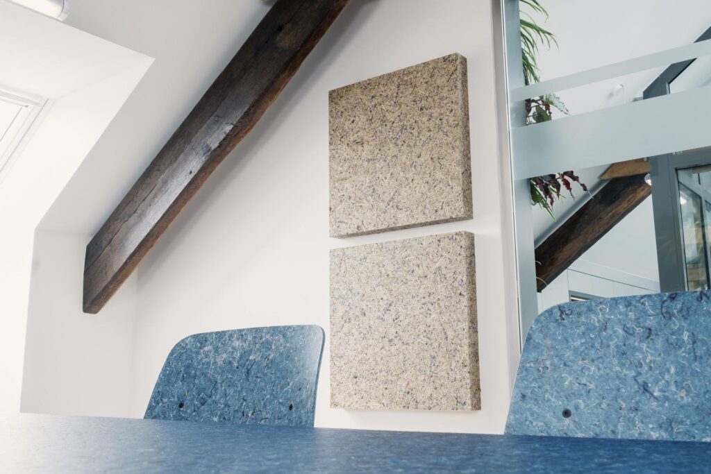 Nachhall und Lärm führen zu Stress und Kopfschmerzen – das können wir gerade im Arbeitsalltag nicht gebrauchen. Schall, der von glatten Wänden wieder zurück in den Raum geworfen wird, sorgt für einen unangenehmen Geräuschpegel. Akustikpaneele schaffen Abhilfe, indem sie den Schall absorbieren. Doppelt wirksam sind die Akustiklösungen von Organoid: Die natürlichen Materialien sorgen für ein angenehmes Raumgefühl, während die akustisch wirksamen Paneele Lärm reduzieren.