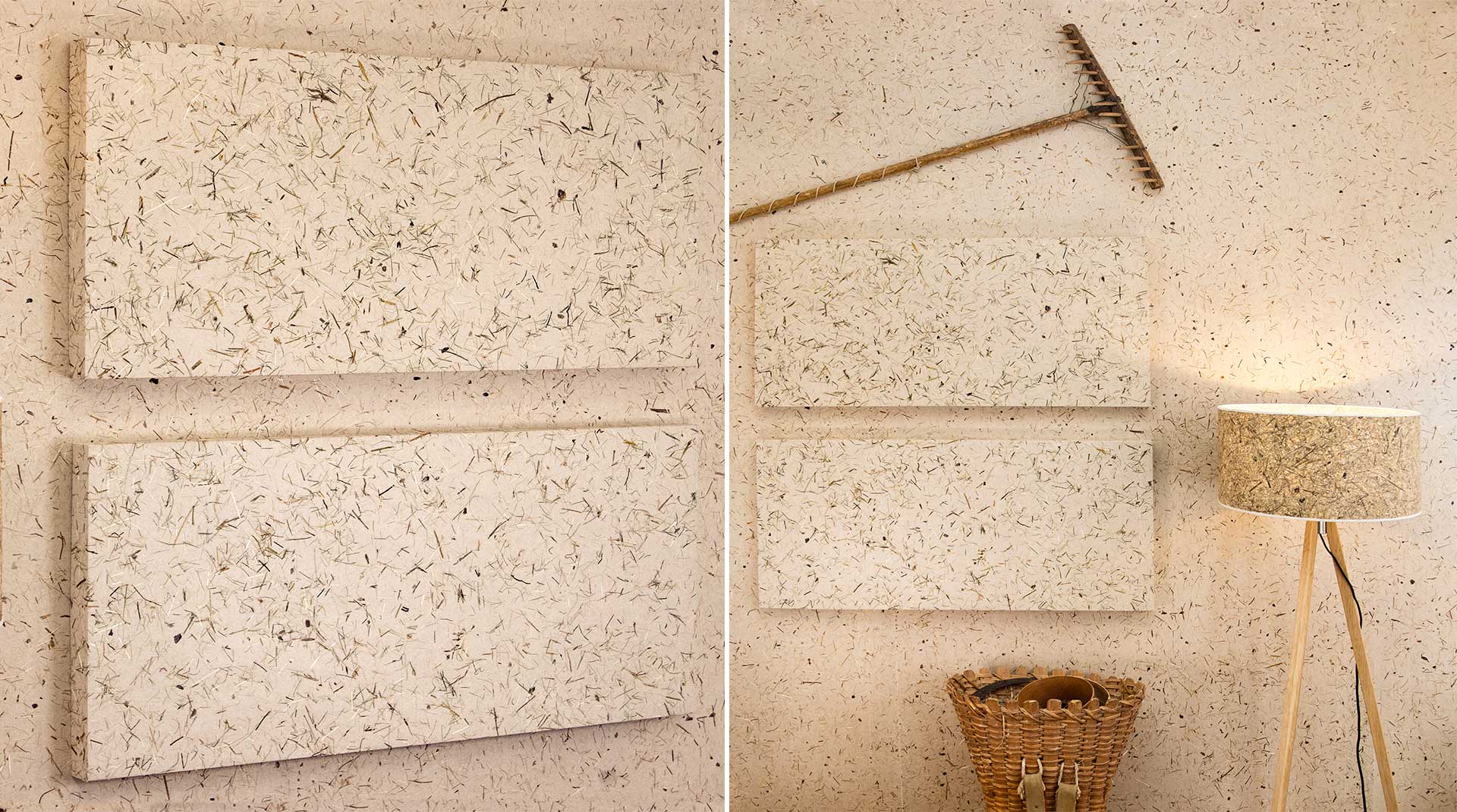 Our surfaces from regionally farmed natural alpine hay unite everything we believe in: active climate protection through binding CO2, protection of the millennia old cultural landscape of the inner alpine meadows and creating a positive impact for the region through local production and short transport routes. For our other surfaces, we use natural plant materials from upcycling, leftovers from the food industry and plants from certified farming. This binds CO2, which would get otherwise get into the atmosphere as a greenhouse gas like with thermal end use or when used as animal feed.