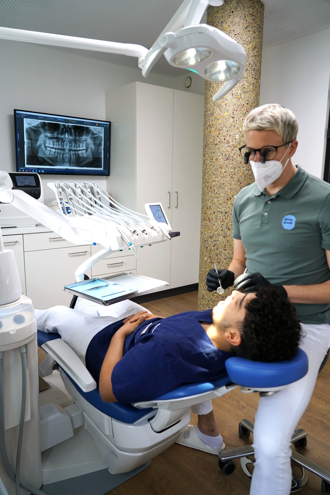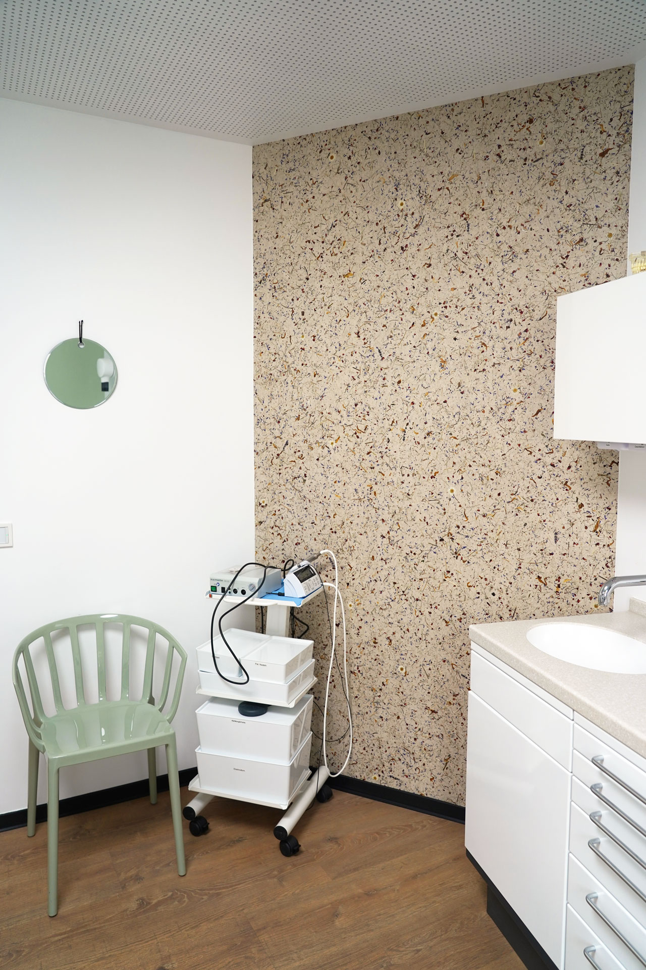 To achieve a light and airy aesthetic, ALMWIESE light was applied as wallpaper in additional treatment rooms, enhancing the tranquil and soothing atmosphere. A perfect blend of aesthetics, nature, and well-being – making a visit to the dentist a positive and memorable experience.