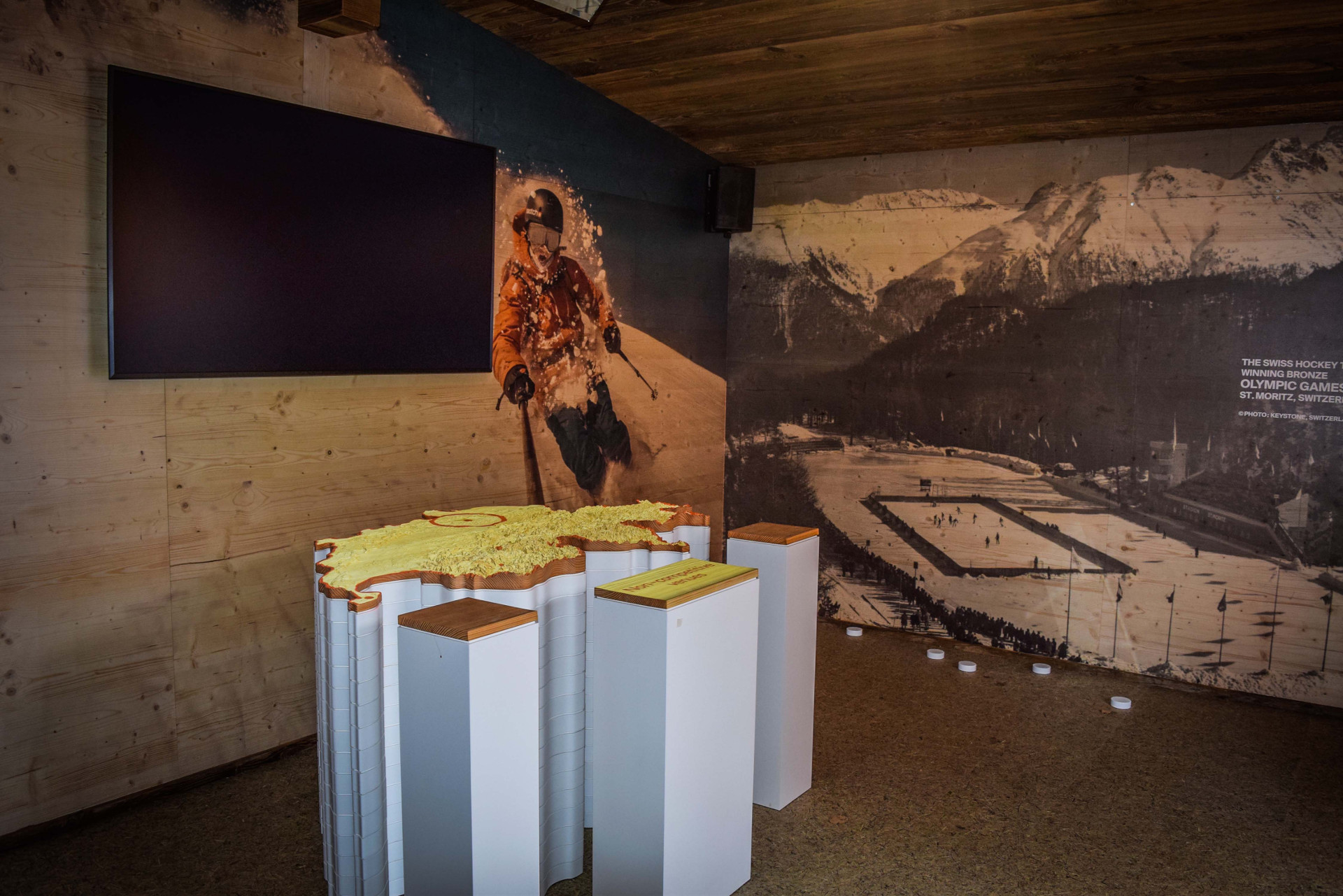 Ebenfalls im Gästehaus untergebracht war die Radiostation des Schweizer Rundfunks. Für eine gute Rundfunkübertragung war die Kabine mit unseren organoiden Bildabsorbern – ebenfalls mit Heu vom Eiger – ausgestattet. Die Bildabsorber mit einem Schallabsorptionsgrad von αw 90 absorbieren mindestens 90 % des auftreffenden Schalls und eignen sich durch ihre einfache und schnelle Montage nicht nur für den Einsatz bei den Olympischen Spielen.