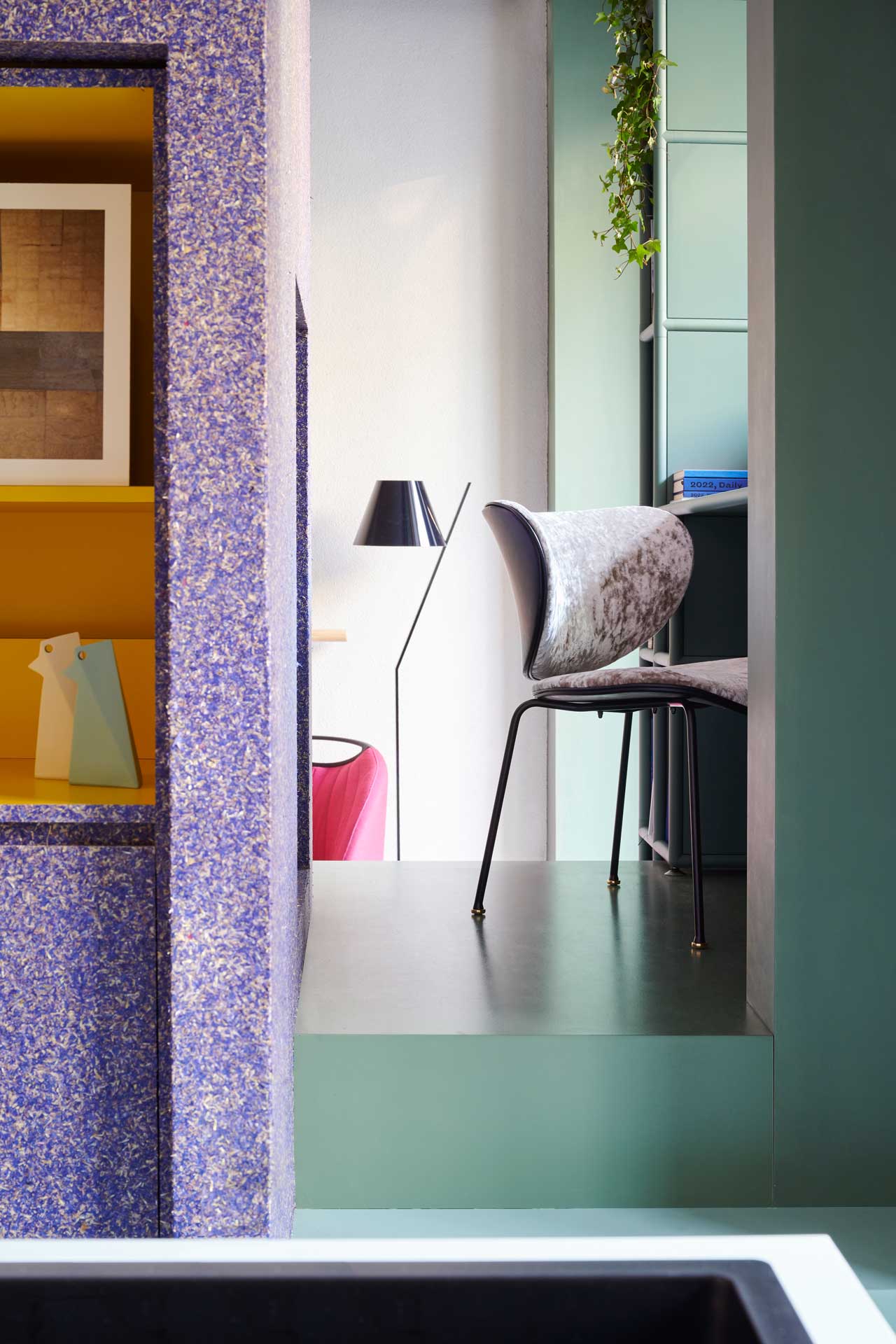 Dieser kreative Rückzugsort mit internationalen Marken lässt Designer-Herzen höherschlagen. Bei dem POSThome 2022 von ThirtyOne Design wurden organoide Naturmaterialien an den Wänden und den Möbeln integriert.