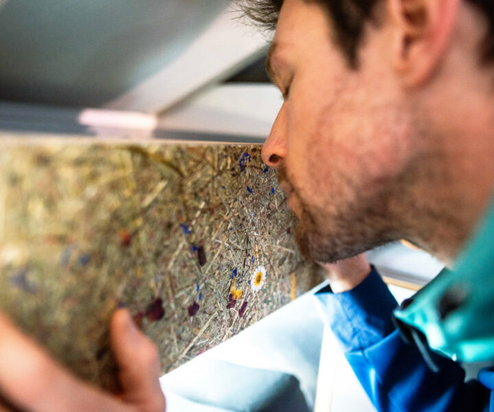 Unser Almheu kommt direkt von den regionalen Bergwiesen Tirols zu uns. Die Transportwege bleiben so sehr kurz – im Sinne der echten, gelebten Nachhaltigkeit. Zusammen mit den bunten Blütenblättern von Margeriten, Rosen, Kornblumen, Erika, Lavendel und Sonnenblumen wird das Heu in viel Handarbeit zu edlen Naturoberflächen verarbeitet. Dabei unterliegt der gesamte Prozess strengen Qualitätskontrollen.