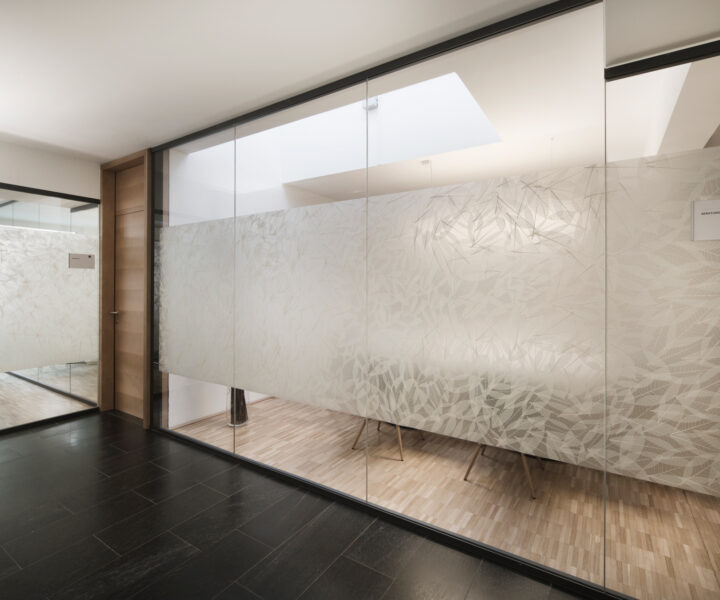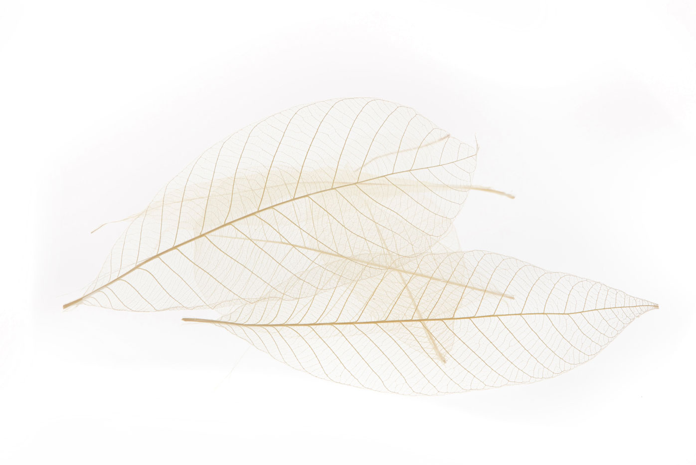 Zarte Skelettblätter in vollflächiger Auftragsstärke premium (ca. 200 Stück pro m²), handverlesen und einzeln aufgetragen auf starker transluzenter Selbstklebefolie – für ganz besondere Effekte bei Hinterleuchtungen oder Verklebungen auf Glas und andere Flächen.