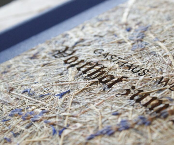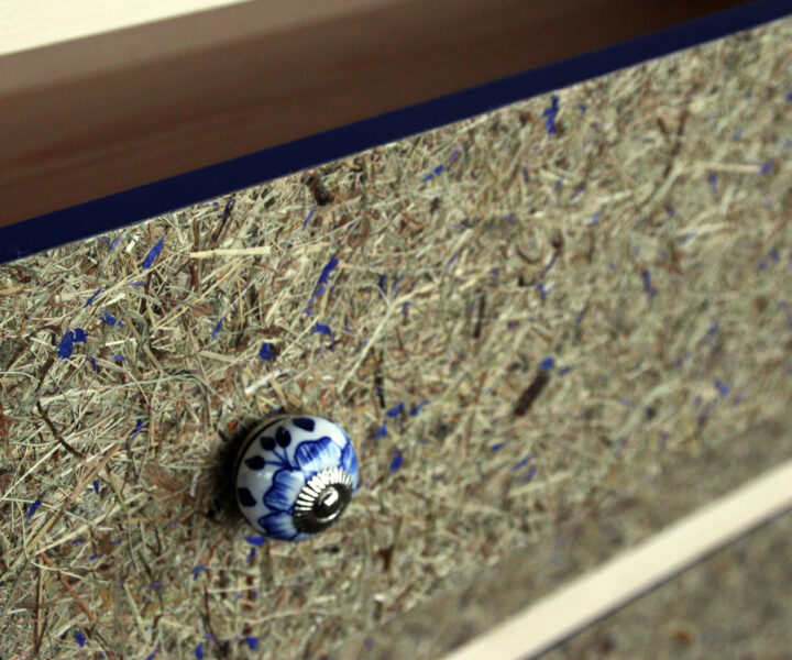 Unser Almheu kommt direkt von den regionalen Bergwiesen Tirols zu uns. Die Transportwege bleiben so sehr kurz – im Sinne der echten, gelebten Nachhaltigkeit. Das Heu wird sorgfältig gesiebt und in viel Handarbeit zu edlen Naturoberflächen verarbeitet. Dabei unterliegt der gesamte Prozess strengen Qualitätskontrollen. Für diese Oberfläche wird das Almheu mit echten blauen Kornblumen-Blütenblättern veredelt, um einen ganz besonderen Effekt zu kreieren.