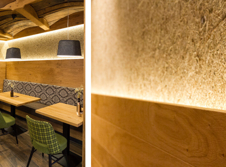 Regionales, handgesenstes Almheu aus den Tiroler Alpen in vollflächiger Auftragsstärke premium auf unterschiedlichen Trägermaterialien – so wird jede Anwendung im Innenraum möglich.