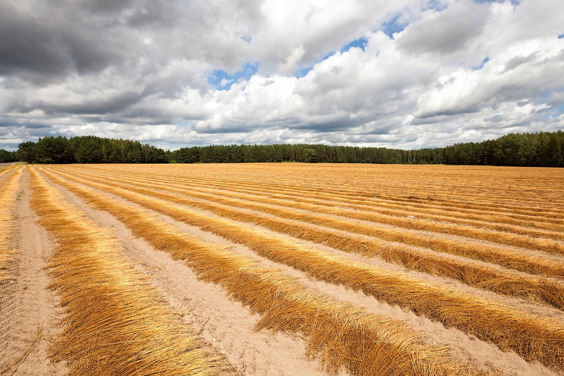 Ende Juni ziehen die sogenannten Raufmaschinen den Flachs samt Wurzel aus der Erde. Nach dem Raufen wird der Flachs auf dem Feld abgelegt. Durch den Regen werden die Nährstoffe aus der Pflanze wieder in den Boden zurückgespült. Nach dem Trocknungsprozess wird der Flachs Ende Juli und August eingefahren und zu Naturfasern weiterverarbeitet.